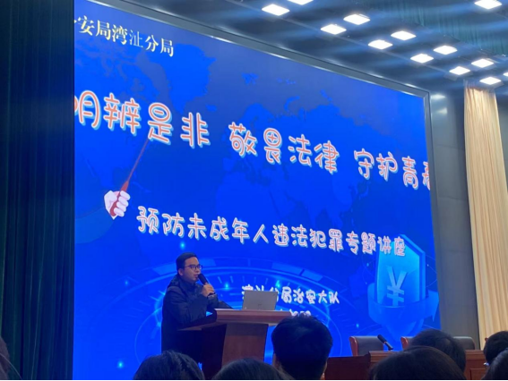 为增强学生法治意识,预防未成年人违法犯罪,12 月 9 日晚 19 点 40 分,医药技术系在第九报告厅成功举办预防未成年人违法犯罪专题讲座。本次讲座由芜湖市公安局湾沚分局提供课件和指导,医药技术系李明祥主任授课,吸引了众多师生积极参与。