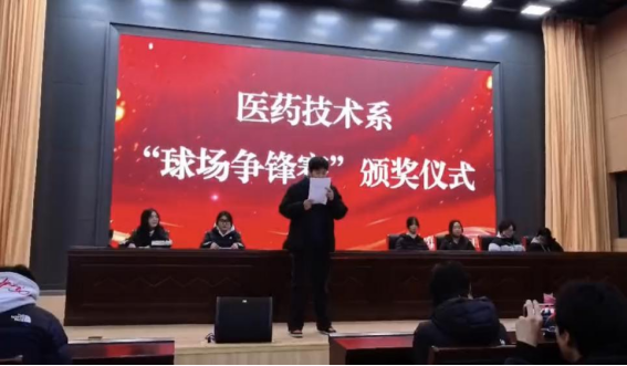 1210日下午,医药技术系球场争锋赛”篮球赛各参赛队队员及学生代表齐聚一堂学校第七报告厅隆重举行颁奖典礼系部团总支负责人江城老师出席颁奖典礼