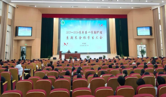 为统筹推进期末各项工作,规范考试秩序,强化卫生管理,筑牢安全防线,确保全体师生平稳有序完成学期收尾、欢度平安寒假,2026年1月15日,护理系在学校第九报告厅隆重召开2025-2026学年第一学期期末全体师生大会。系部主任张浩主持会议并发表讲话,护理系全体教职工、全体学生参加本次大会。