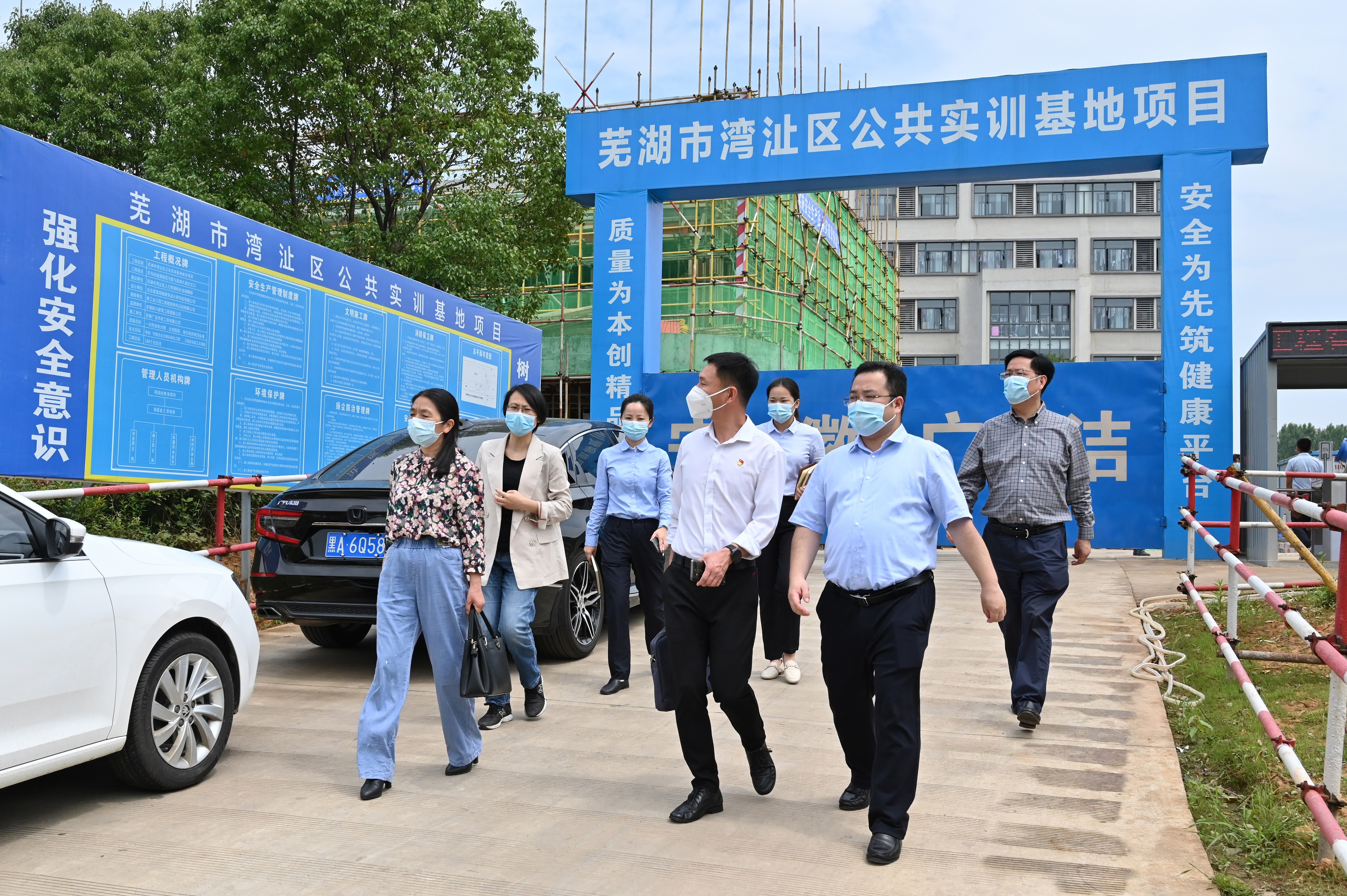 王晓妹、张英一行实地查看了芜湖市湾沚区公共实训基地项目建设进展,听取了项目施工单位、监理单位关于建筑施工进度的汇报,并就进一步做好后续建设和运营提出了要求。